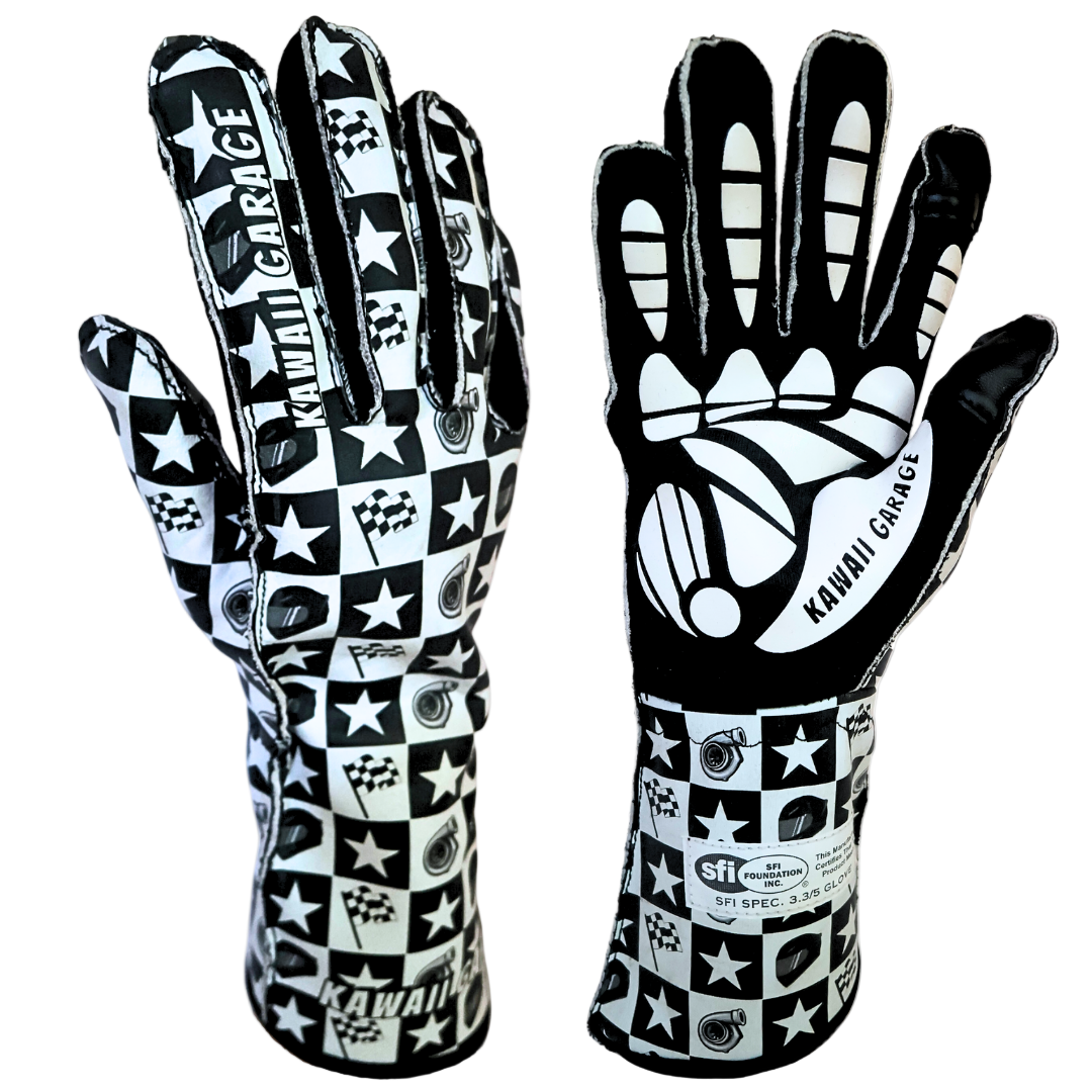SFI Certified Racing Gloves - Black & White Checkered Star | Unisex